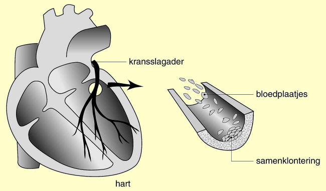 vaatwand afgezet, waardoor de doorbloeding van de hartspier is belemmerd (zie